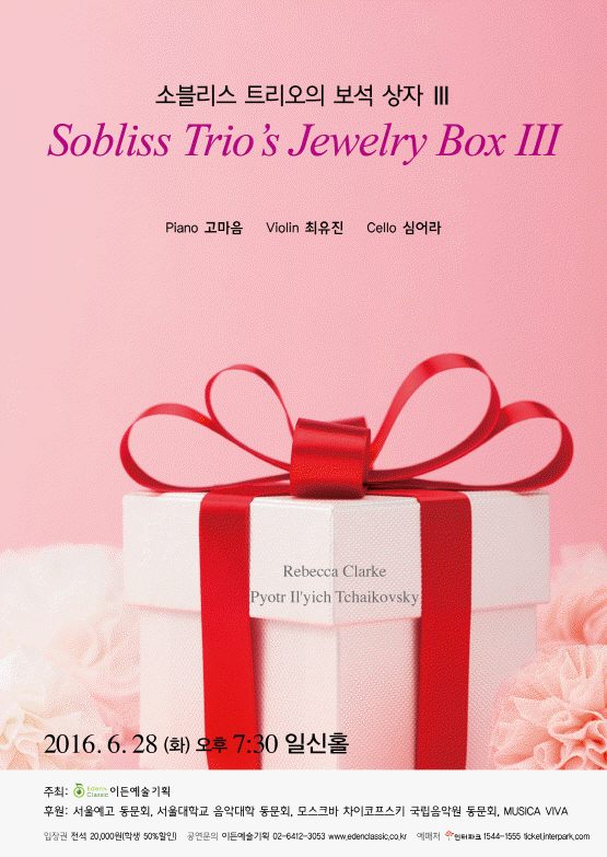 피아니스트 고마음이 주축으로 구성된 피아노 트리오 앙상블 팀으로, Sobliss 는 Solace(위안)과 Bliss(축복)의 합성어입니다. “소블리스”라는 앙상블 이름에서와 같이, 음악을 듣는 모든 이에게 따뜻하고 행복한 기운을 전달하고 더 나아가 마음의 위로가 되고 힘이 되고자 노력하는 트리오입니다.